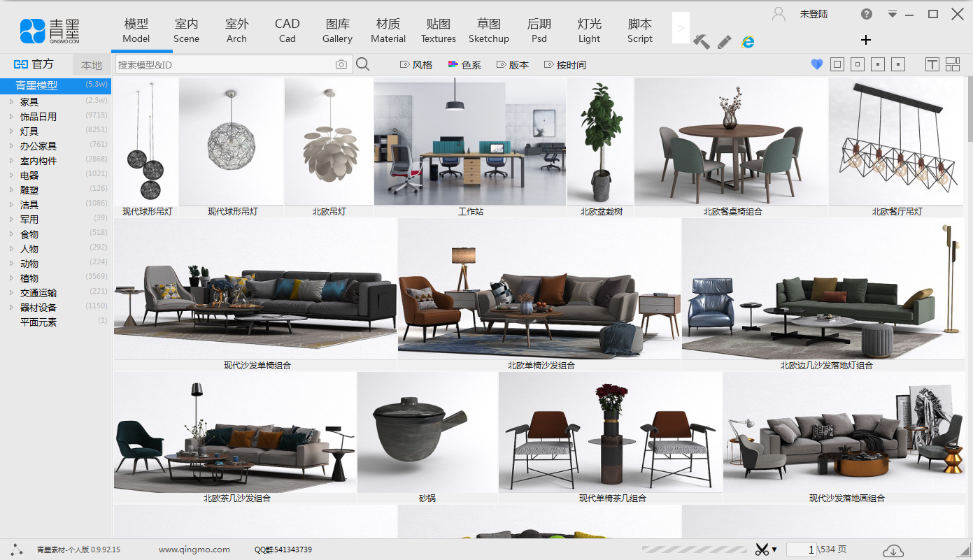 4、页面的上面一栏有,模型、室内、室外、cad、图库、材质、贴图、后期等一些操作,可以根据自己需要的点击进去进行编辑
