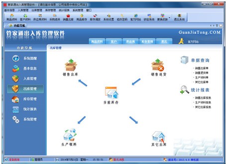 出库管理:销售出货,客户退货,生产领料,销售单据和客户退货查询,客户往来帐务,客户付款。