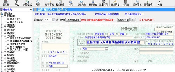7、输入小写金额自动填写大写金额;自动填写大写日期;自动记忆近期使用的付款单位、付款行、付款账号下次使用同一票据时则自动填写;自动填写票据的存根。内置全国的省、市名称,省市关联,下拉选择即可。单位名称的字体和大写金额字体根据长度自动缩放。