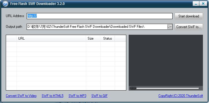 1、启动ThunderSoft Free Flash SWF Downloader,进入软件主界面。