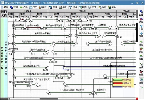 用户可以直接在概要横道图和双代号网络图界面进行计划的编制,通过拖、拽、拉等简单操作即可完成。软件同时还支持各种图标(旗帜、五星、红绿灯等)来增强对高层次计划的描述效果。