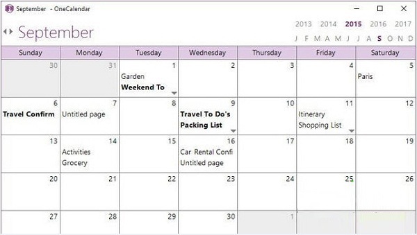 Onetastic的另一个有用的功能是内置OneCalendar,一个插件,可以帮助您查看微软的OneNote文档作为一个日历。通过这种方式,你可以检查自如,或计划任务和约会你的时间表,在短短的点击。