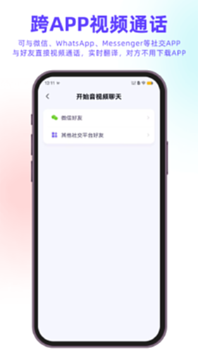 (2)视频通话翻译:可分享给其他社交好友,对方不需要下载本APP,即可以与你进行视频或者音频通话并实时翻译。