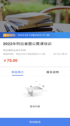 3、学习:可以查看学员参加的培训项目,通过培训项目可以完成课程学习的考核环节;