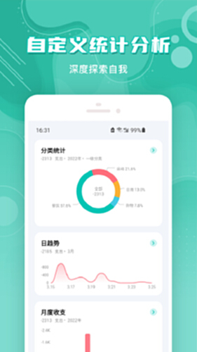 超多统计 - 饼图,条形图,折线图,每月收支一目了然