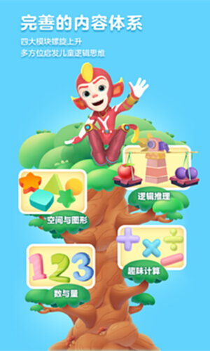 根据儿童认知心理特点设计,为孩子们提供思维逻辑启蒙和兴趣培养的内容,采用寓教于乐的方式,在“数与量”、“趣味计算”、“空间与图形”、“逻辑与推理”四大领域,综合启发孩子的逻辑思维。