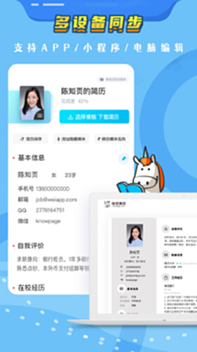 5、拥有多设备同步功能,让用户在多终端也可以快速编辑简历;