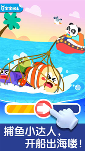 在【宝宝钓鱼】里,还能驾驶轮船去海上捕鱼,在小池塘边用渔网捞鱼!快来试试,看谁能又快又准地捕住小鱼,成为小小捕鱼达人!