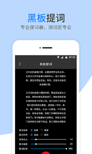 可以设置提词器上的文本滚动速度,文字大小,颜色,使得拍摄时不用刻意的去死记硬背台词,让表情更自然,节省视频的拍摄时间,提高视频的拍摄质量。