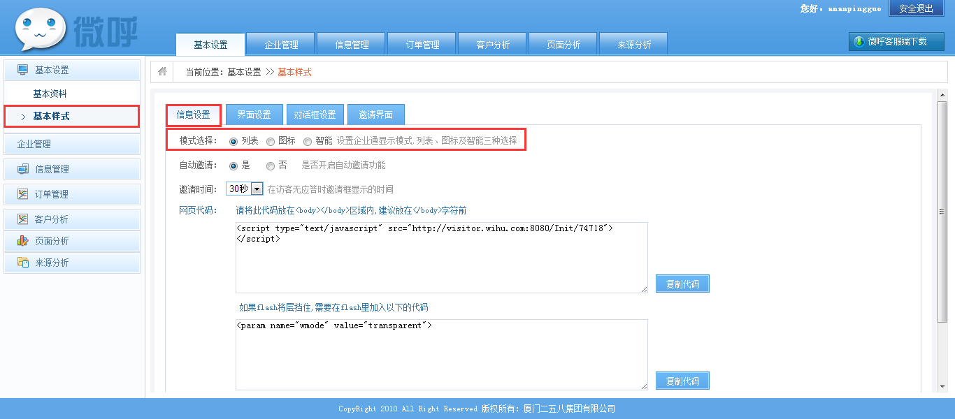 5、邀请时间:30秒在访客无应答时邀请框显示的时间