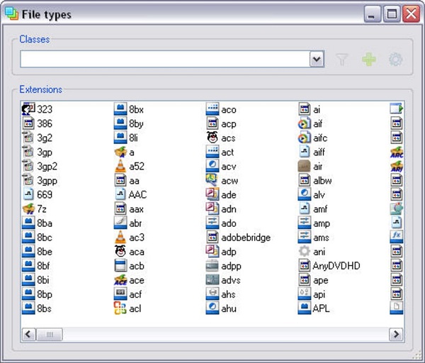 Types是一款查看系统文件类型的小工具。利用才可以查看你系统中已注册的文件类型,并且可以删除修改,可以查看关联的程序,修改文件类型的图标。