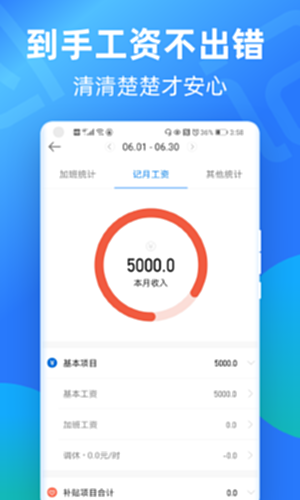 2、记录加班时间后,帮您自动计算加班工资及当月总工资