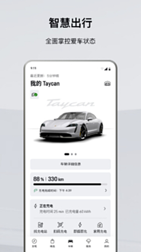 保时捷 APP 是一款智能出行平台,提供车辆监控、远程控制、导航、充电服务、预约试驾等个性化服务。该 APP 专为车主和车迷打造,集成了官方资讯,并针对 Taycan 车主提供充电网络服务,实现便捷管理和尊享体验。