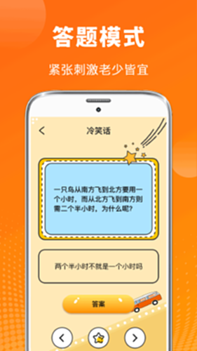 脑筋急转弯达人题目设计巧妙,可以活跃娱乐气氛,精选了海量轻松幽默的脑筋急转弯制作了该款app,从而给人们带来更多欢乐