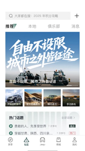 Jeep APP升级,提供一站式越野体验,涵盖高效服务、出行选项、社群互动和冒险活动,让用户轻松开启Jeep探险之旅。