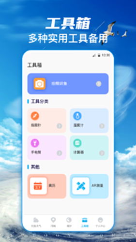 【工具箱】内含指南针、温度计、手电筒、计算器、AR测量仪等您在户外所需的工具用品,方便您出行钓鱼。