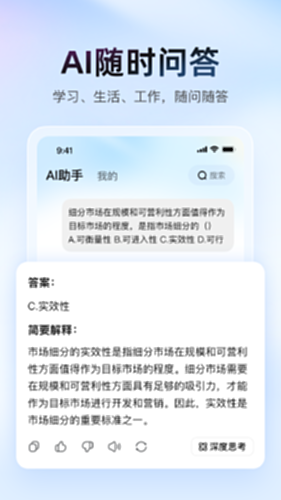 1、搜索答疑:遇到难题怎么办?用搜索答疑功能,一拍即出答案,解题又快又准!