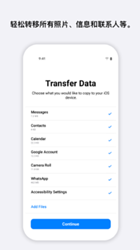 转移到iOS电脑版应用程序提供了一种便捷的方式,通过Wi-Fi和安全码,将通讯录、照片、视频和日历等数据从Android设备传输到iPhone或iPad。它无需额外的备份,简化了设备转换过程,让用户快速迁移数据并享受新设备。