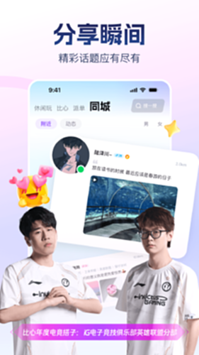 1、实时语音互动:比心最新版内置高音质语音,零延迟沟通,战术交流、闲聊嗨唱两不误。