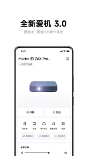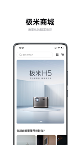 - 支持使用App遥控投影设备、手机同屏、应用安装、一键截屏、文件传输等功能,部分机型支持蓝牙开机,随心操控极米投影设备,畅享大屏使用新体验。