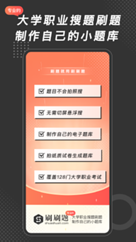刷刷题APP是一款专业的大学职业资格刷题搜题备考工具,支持多种搜索方式。支持拍照、语音、文字、浮窗以及截屏搜索,拍高数。提供题库和电子错题本制作功能,一键将Word、Excel和PDF文件转化为题库,手机碎片化练习,自动记录错题本。丰富的练习模式及模拟考试和记笔记功能。题库制作完成后,可以与朋友分享,或创建班级让朋友加入,一人创建多人练习