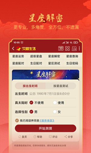 汉程生活电脑版是一款民俗文化测算平台,提供八字、姓名、号码测试和运势分析,通过传统元素的综合分析,帮助用户探索自我、指导人生决策,弘扬中华传统文化,在现代社会中寻求传统智慧的指引。