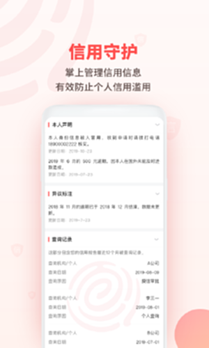 3. 信用守护:掌上管理自己的信用信息,有效防止个人信用滥用,修正错误记录。