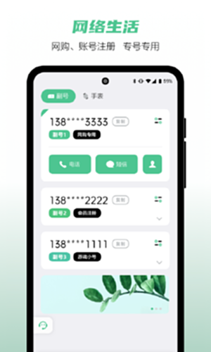 APP、网站等账号注册用副号,保障主号隐私安全。