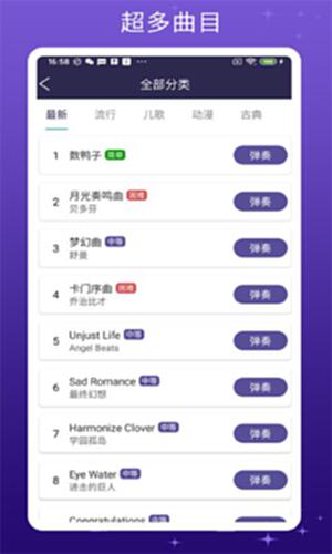 它内置了许多经典钢琴曲目,包括《小星星》,《童话》等钢琴谱子,大人小孩都适合,更多歌曲将会不断更新。