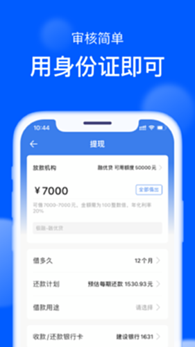 2.效率高:使用身份证+银行卡即可申请