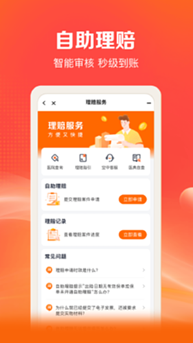 办理赔:自助理赔,秒级到账,进度透明,实时查阅。