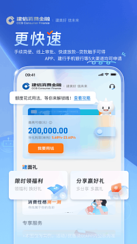 建信消费金融APP电脑版是建行官方信用贷款平台,提供最高20万元的额度,支持快速借款、分期购物和灵活还款,采用自主可控的系统和风险管理体系保障安全。贷款仅限消费,需理性借贷,避免逾期。