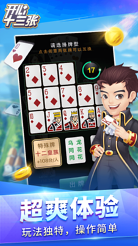 开心十三张电脑版是一款免费的经典扑克游戏,下载快捷且占地空间小,采用竖屏设计,界面精美。游戏操作流畅,规则清晰,并提供丰富的活动奖励和每日登录奖励。