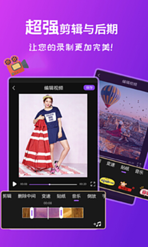 这款屏幕录制APP操作便捷,录制超清视频,支持背景音乐、剪辑、画中画解说等编辑功能。用户可灵活控制录制,添加剪辑、字幕和配音,满足各种录屏和视频创作需求,一键分享至社交网络。