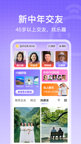 闲趣岛电脑版是一款专为40岁以上人士设计的聊天交友平台,提供同城群、兴趣群和单身交友等功能,满足用户社交、觅伴或娱乐需求。用户可在线上线下互动,分享见解、享受娱乐,寻找契合的朋友,共同探索更多精彩人生。