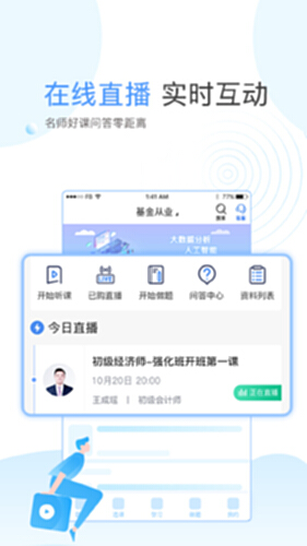 1、直播与互动学习:提供直播视频课程,包括刷题班、冲刺班、押题班等多种课程形式,用户可随时随地通过电脑观看直播课程,与老师进行实时互动,还支持举手提问和屏幕分享功能,提升学习的参与感和实效性。