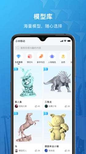 同时,我们鼓励有原创设计能力的用户入驻平台,让模型库成为展示创意的绝佳平台。