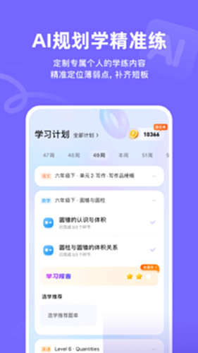 [个性化自习规划] 根据孩子当前水平定制学习规划,周周更新周周练。