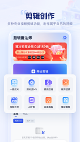 支持画面裁剪、修改MD5、添加字幕、书单制作、视频变漫画、视频配音、文字视频、提词器、消除笔、格式转换等