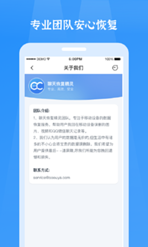 聊天恢复精灵是专业级数据恢复工具和隐私保护利器,专家全天在线咨询,十年数据恢复经验,保护用户隐私,注重数据安全。你的数据很珍贵,我们替你守护。