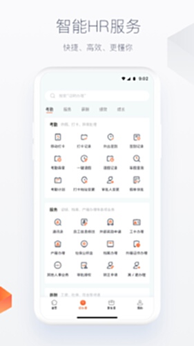为员工提供在企业的职业生涯全周期所需的HR服务,包括:职前保温、入职、转正、调配、晋升流程、移动考勤、请休假、绩效考核、人才发展、招聘内推、个人信息查询、合同管理、证明办理、工资社保查询、智能员工咨询、员工关怀、福利平台、健康管理、培训学习、离职流程…