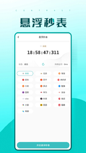毫秒级悬浮秒表,支持定时倒计时模式,拥有丰富时间校准功能,还可以进行网络测速,支持淘宝、京东、苏宁、拼多多、抖音等主流平台时间精准校准延时;