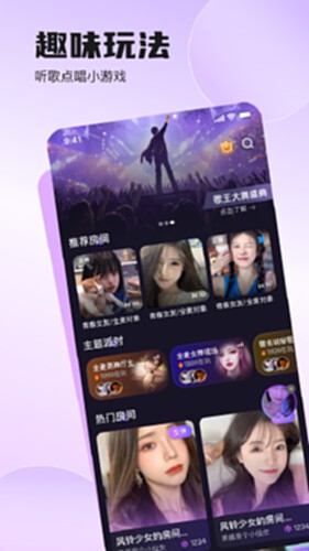 2、趣味玩法:内置多种互动形式,如破冰、连麦、游戏等,提升交友乐趣。