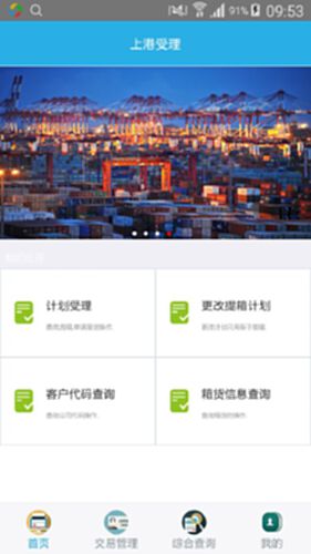 上港集团网上受理平台作为受理中心的网上窗口,为客户提供了办理提箱计划、办理查验计划、箱货查询等服务,客户可以随时随地办理、查询或修改业务,还能直接查收到海关、国检、理货、放箱、换单等电子信息,无需在海关、码头计划受理点和码头查验点之间来回奔波。