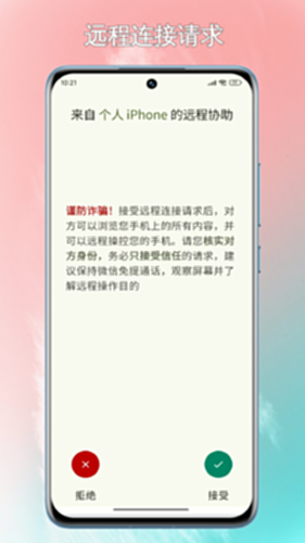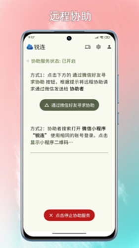 受助者可以直接将锐连的远程访问链接通过微信发送给亲友,让亲友发起对自己手机的协助和操控。