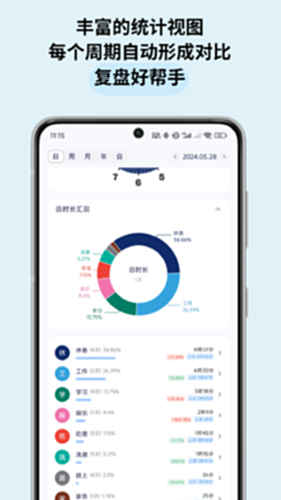 时间日志电脑版是一款基于柳比歇夫时间管理法的手机应用,通过便捷的提醒和流水式记录,捕捉用户每天的活动,并提供详细的时间消耗统计,帮助用户复盘并优化时间管理。