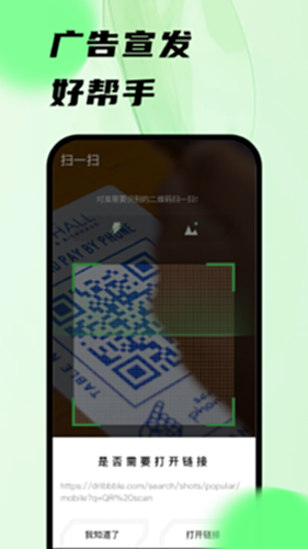 支持摄像头扫描、相册导入图片识别方式,随时随地扫描二维码并快速显示结果,一键打开二维码链接;
