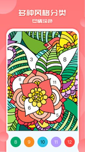 涂色素材丰富,满足不同人的不同需求,对于那些不擅长绘画的人来说,数字涂色游戏更是他们“创作”的良方,让人上瘾的数字填色画画游戏,数字填色的素材丰富多样,花卉、动物、人物、可爱、漫画等数十个分类供您挑选。