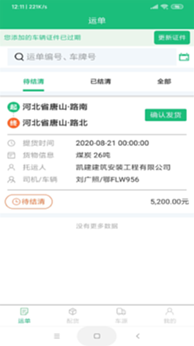 4、接单前先上传司机驾驶证、行驶证、身份证、从业资格证、道路运输证,需提供最新的年审页