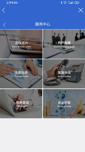 【服务中心】内容涵盖开户、交易指南、账单查询、资金存取等内容,一站式解决投资者遇到的问题。